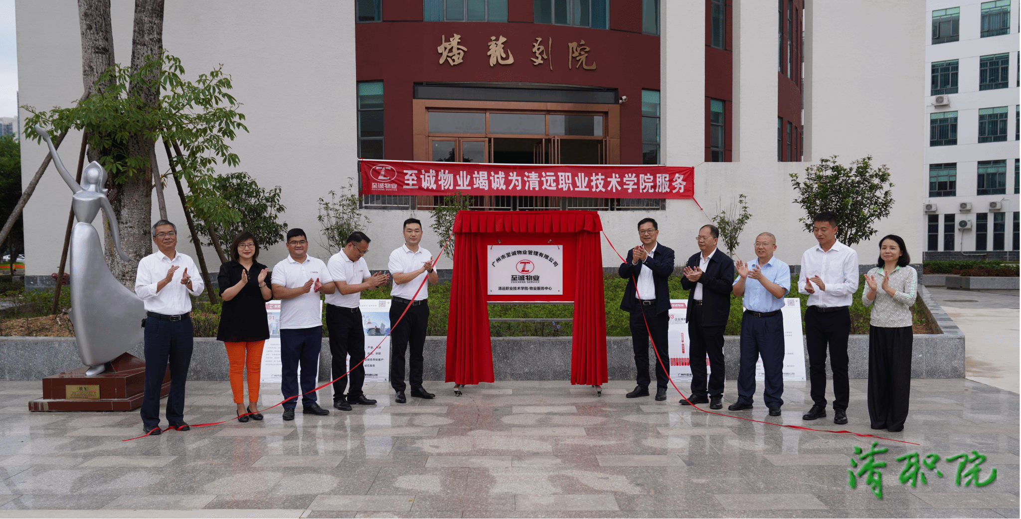 10月31日下午,清远职业技术学院在艺术楼前广场举行新物业公司——广州市至诚物业管理有限公司进场暨签约仪式。学院党委书记李斌、纪委书记莫锋、副院长李生明等及相关部门负责人、广州市至诚物业管理有限公司总经理及团队成员出席仪式,共同见证校园后勤服务升级的关键节点。