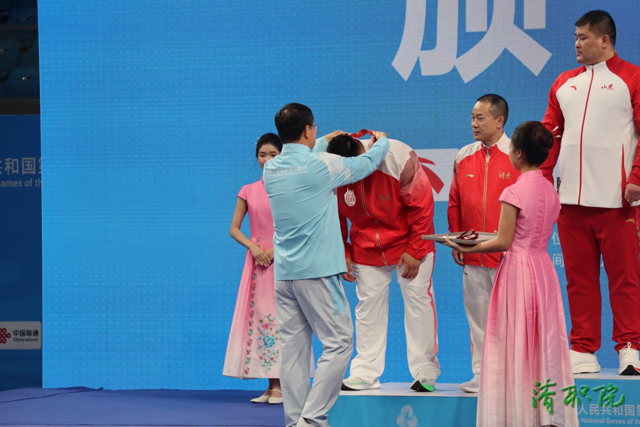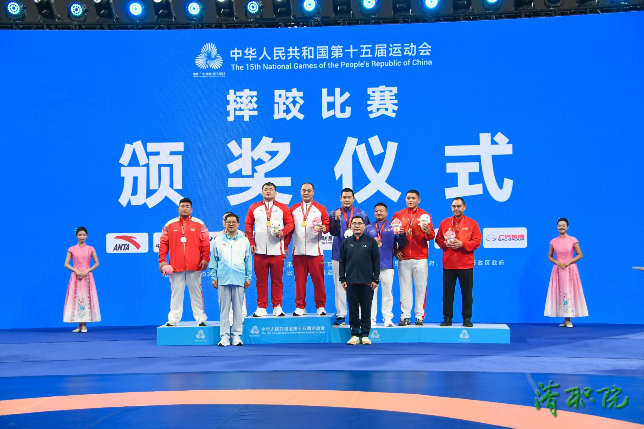 学院作为此次十五运会清远赛区唯一一所承担任务的高校,不仅承担了中国式摔跤、健身气功两项群众项目赛事及竞赛项目摔跤比赛的赛会志愿服务工作,学院党委书记李斌还受邀作为颁奖嘉宾,为摔跤比赛男子古典式130公斤级项目获奖运动员颁奖。