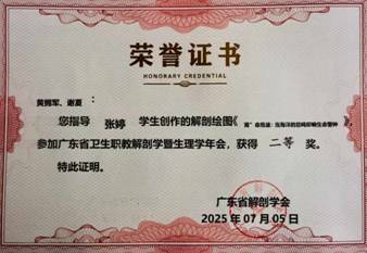 在教师教学能力及学生解剖绘图比赛中,该校成绩显著。黄拥军老师指导的学生张婷作品《“肾” 命危途:当海洋的悲鸣叩响生命警钟》、林秋宏作品《脑域:能量流网》分获绘图比赛二等奖,欧阳一蕙老师指导的李玥莹作品《“心脉交响”》获三等奖。