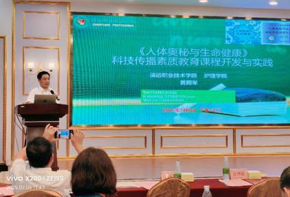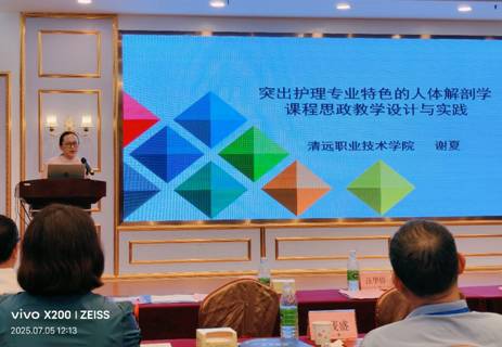 清远职业技术学院护理学院基础医学教学团队积极参与,黄拥军副教授分享了 “人体奥秘与生命健康” 科技传播素质教育课程的开发与实践,谢夏老师交流了 “突出护理专业特色的人体解剖学课程思政教学设计与实践”, 得到与会专家和兄弟院校老师们的肯定和赞扬。团队提交的 3 篇教学改革与研究论文全部获评优秀论文。