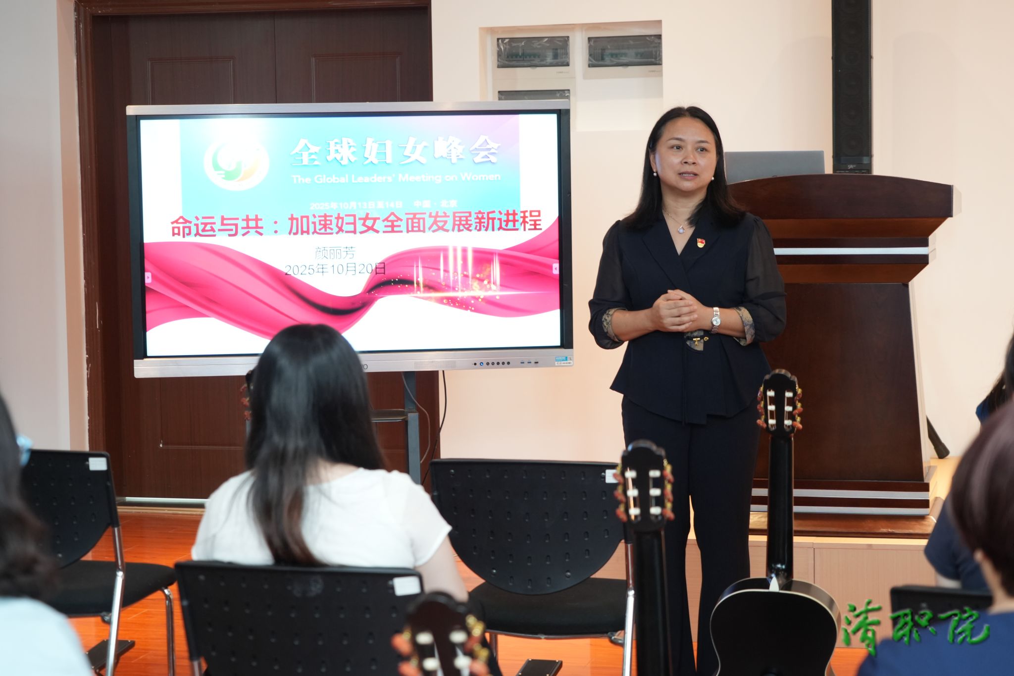 学院工会女工委主任颜丽芳带领大家学习了习近平总书记在全球妇女峰会上的讲话精神。她表示,女性在推动社会发展中具有独特优势,清职院女教职工们通过参与艺术活动,生动展现了新时代女性自信优雅的精神风貌。玛丁尼国际吉他产业学院教学部主任杨卓博士为大家带来了首堂吉他教学课。他从吉他发源、吉他构造、音阶原理等基础知识入手,深入浅出地讲解了持琴姿势、拨弦技巧等入门要领。老师们认真练习右手拇指拨弦,教室里传出阵阵清脆的琴声。