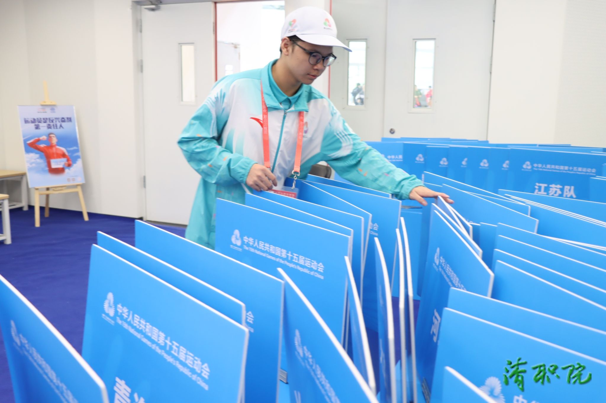 在裁判助理组,2024级服装设计与工艺专业的温梓恒同学从一个全新的视角,感受着全运会的魅力。作为小组长,他组织伙伴们协助裁判整理资料、编排赛程、引导运动员检录,确保了赛事的顺畅进行。温梓恒分享道,“特别是在比赛倒计时的时候,不管还有多久,运动员们也没有放弃,坚持到最后,让我特别的感动!”这份感动,让他更加坚定了做好“幕后英雄”的决心,因为他知道,自己的每一份努力,都是为了让运动员们能安心、放心地拼搏。