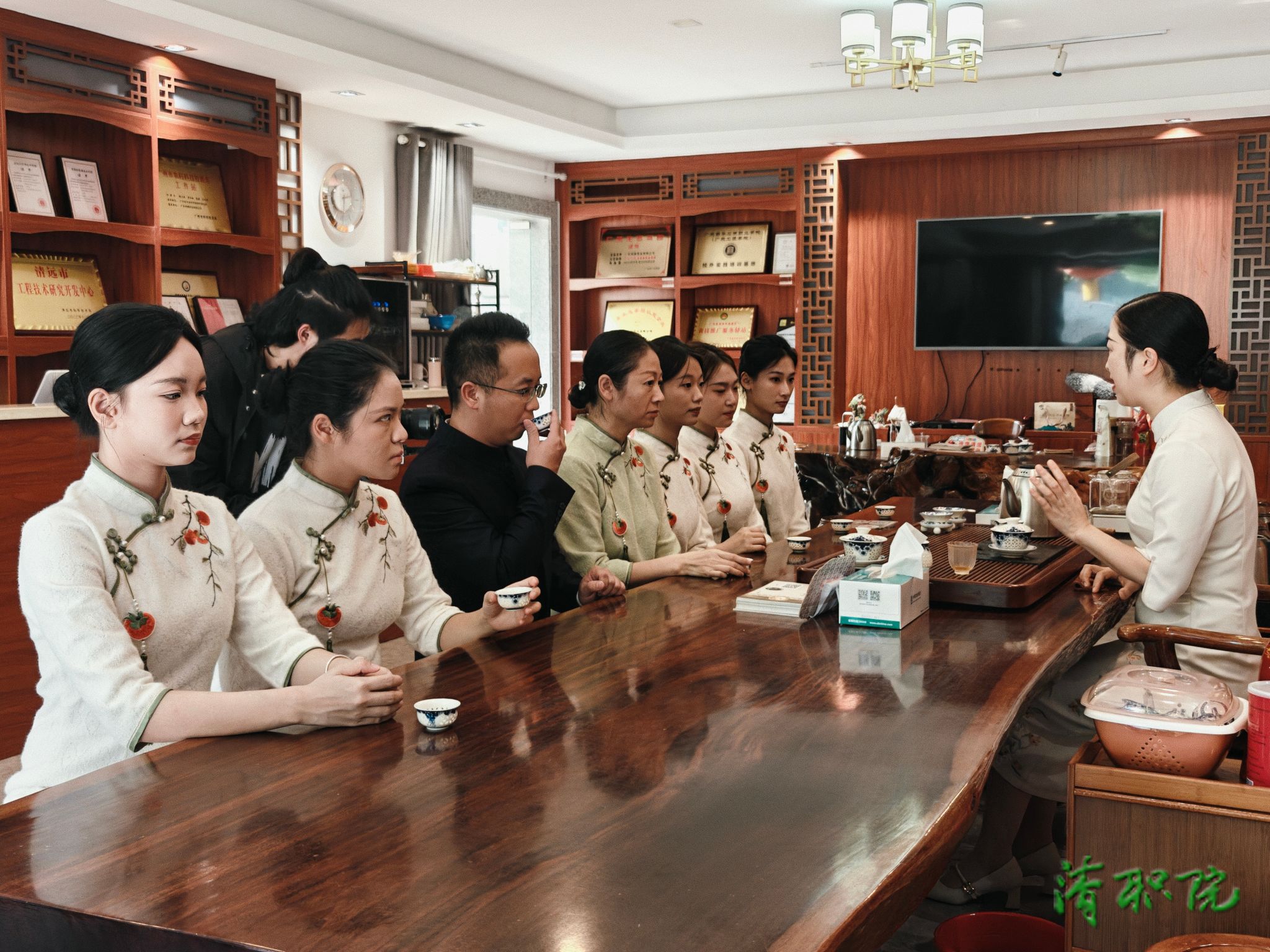 信息技术与创意设计学院党总支书记曾树桂将此次实践定义为“行走的思政课”:“学生在拍摄茶农一家时,发现其祖孙三代守护的不仅是30亩茶园,更是一份‘宁可三日无粮,不可一日无茶’的文化坚守。”数字媒体专业学生在日记中写道:“当我调试稳定器拍摄茶艺表演时,突然懂了什么是‘工匠精神’——就像茶师说的,好茶要经得起一百度的热情,耐得住零度的寂寞。”