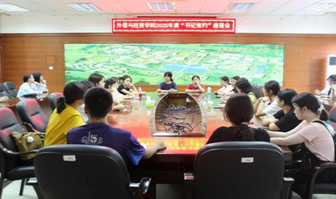 “书记有约”面对面,共筑新生成长路——外语与经贸学院召开2025级新生座谈会近日,外语与经贸学院“书记有约”新生专场座谈会在11-201会议室举行。外语与经贸学院党总支书记陆红光、党总支副书记林燕芬、团委书记成彦博与24名2025级新生代表共话入学适应、共解成长困惑、共绘发展蓝图。会上新生代表踊跃发言,积极分享入学一个多月以来的收获与感受。不少新生坦言,在英语学习方面存在一定困难,担心无法跟上课程进度,影响期末考试成绩;还有学生反映,宿舍与教学楼之间步行距离较远,赶早八课较为吃力。除学习困扰外,新生们还提出了诸多生活方面的期盼与关注问题,如校园共享单车的投放时间、饭堂食品安全保障情况、快递站距离宿舍较远等。从课程节奏的适应,到生活便利性的提升,再到对未来职业规划的初步思考,同学们敞开心扉,围绕多个方面提出了二十余条具体问题和建议。陆红光和林燕芬认真听取新生们的发言,详细记录了同学们在大学生活和学习中遇到的具体问题,切实帮助新生解决实际困难。林燕芬寄语新生,“适应期也是成长期,希望大家把‘问题清单’变成‘成长清单’,学院永远是大家的坚强后盾。”陆红光对2025级全体新生提出三点希望,一要“立学”,打牢专业底色,保持求知热情;二要“立行”,投身第二课堂,在社团、竞赛中锤炼本领;三要“立心”,主动了解行业需求,把个人“小目标”融入国家“大蓝图”。“书记有约”是外语与经贸学院持续多年的“三全育人”品牌活动,本学年还将围绕“专升本”“就业冲刺”等主题持续开展,实现师生沟通“零距离”、成长服务“不断线”。